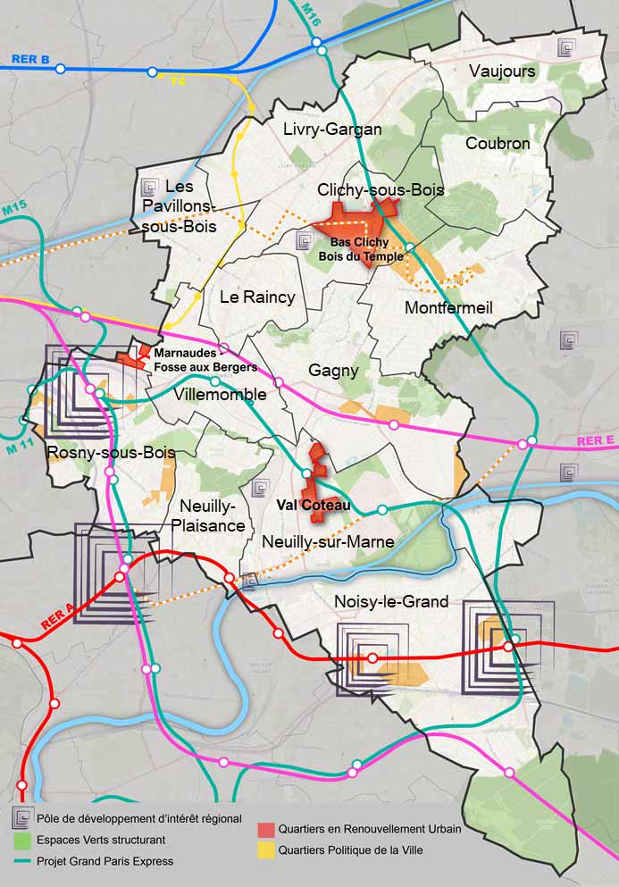 Transformer en profondeur les quartiers en difficulté pour les ouvrir à une nouvelle dynamique d’attractivité et améliorer considérablement les conditions de vie de leurs habitants, telle est l’ambition de ses projets d’aménagement dans les quartiers prioritaires de la politique de la ville à Clichy-sous-Bois, Neuilly-sur-Marne et Villemomble. Ils changent le visage des quartiers souvent construits dans les années soixante :
